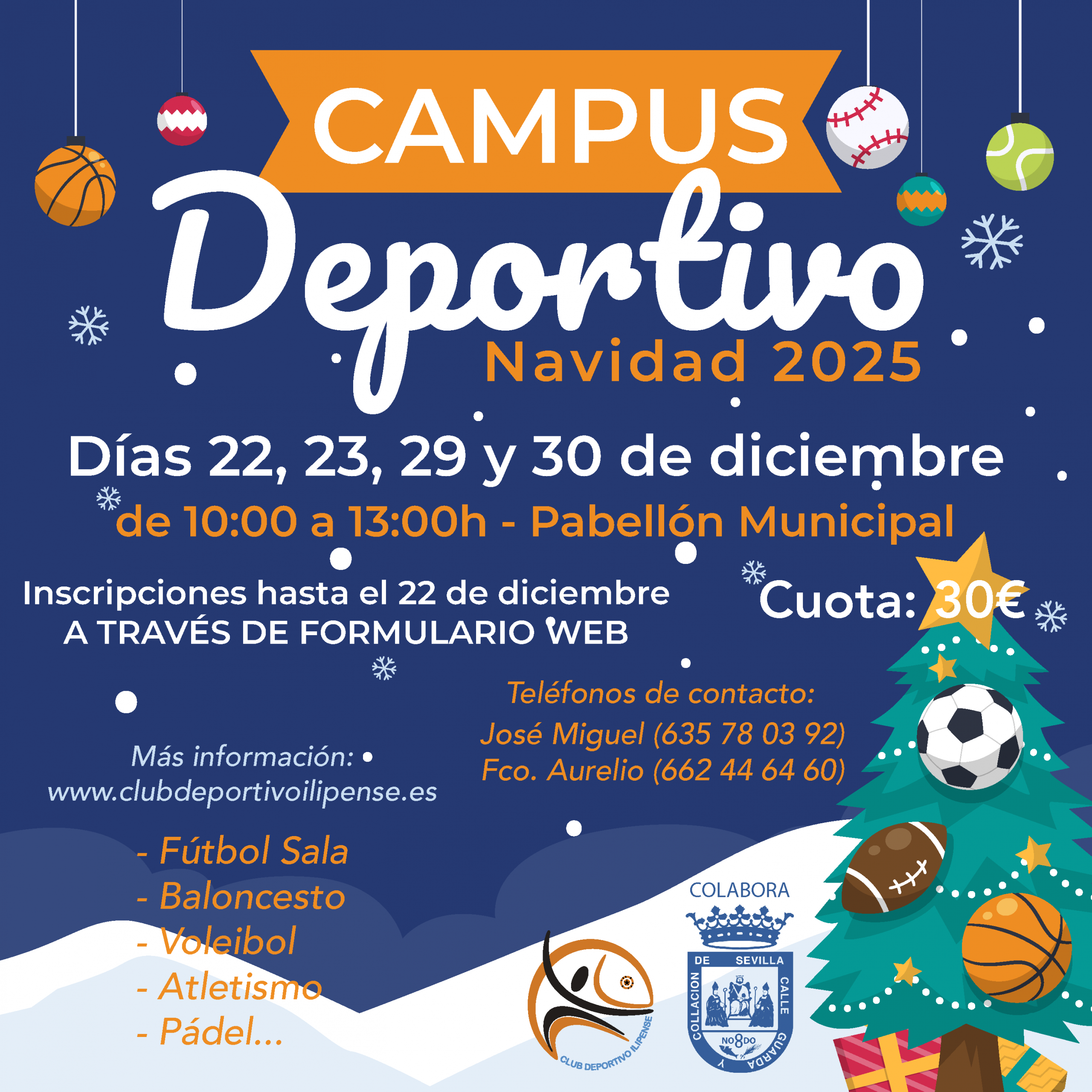 La alegría, el deporte y la recreación están de vuelta con el CAMPUS DEPORTIVO NAVIDAD 2025 del CD ILIPENSE. El pasado LUNES 1 de diciembre se ha dado luz verde a esta actividad navideña, un programa de conciliación familiar y laboral que permite a los más pequeños de la casa disfrutar de la práctica deportiva durante la época tan especial que ahora llega.